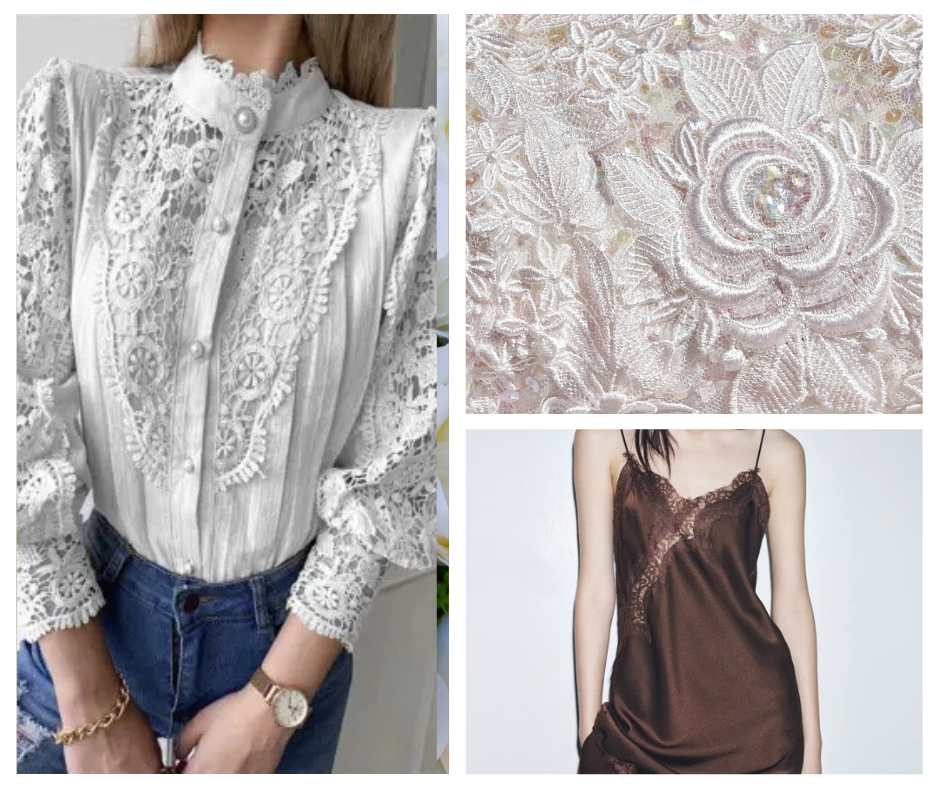 A csipke különösen jól áll azoknak, akik szeretik hangsúlyozni nőies oldalukat. Finomabb alkaton légies, míg sportosabb testalkaton izgalmas kontrasztot teremt. Egy fekete csipkeblúz például bőrhatású nadrággal párosítva modern, vagány összhatást kelt.